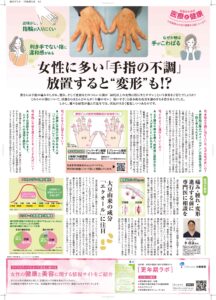 • 女性に多い「手指の不調」放置すると‘’変形‘’?